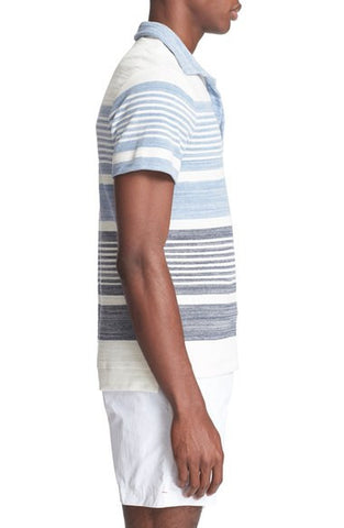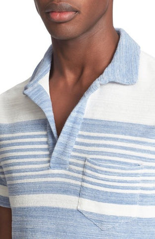 - Mixed tonal stripes pattern the plush cotton terry of a resort-ready polo perfect for lounging poolside after a refreshing dip in the deep end.