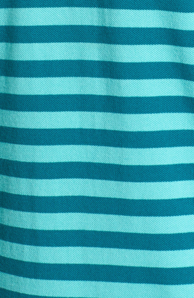 - Bright, two-tone stripes framed by a solic spread collar and cuffs define a soft, breathable piqué-knit polo.