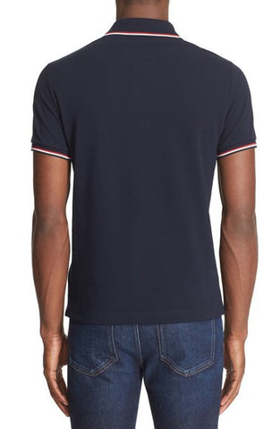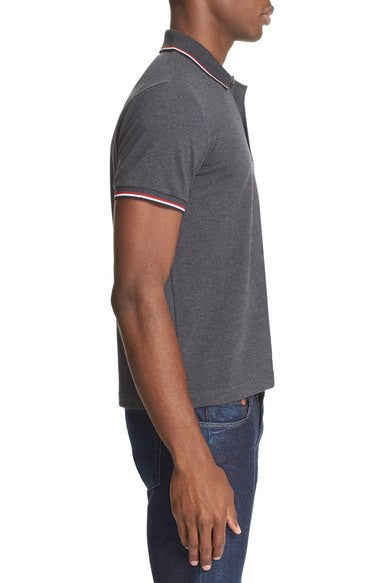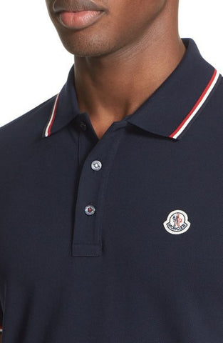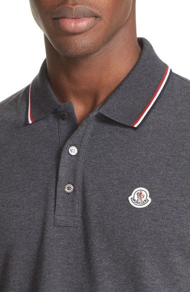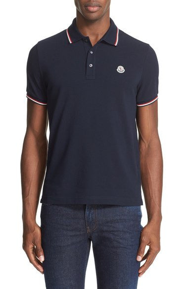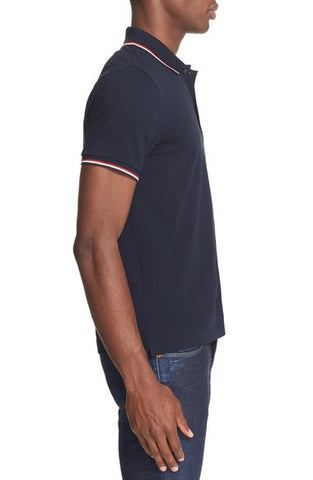 - Tricolor stripes tipping the collar and cuffs add a signature touch to a handsome short-sleeve polo crafted from fine cotton piqué.