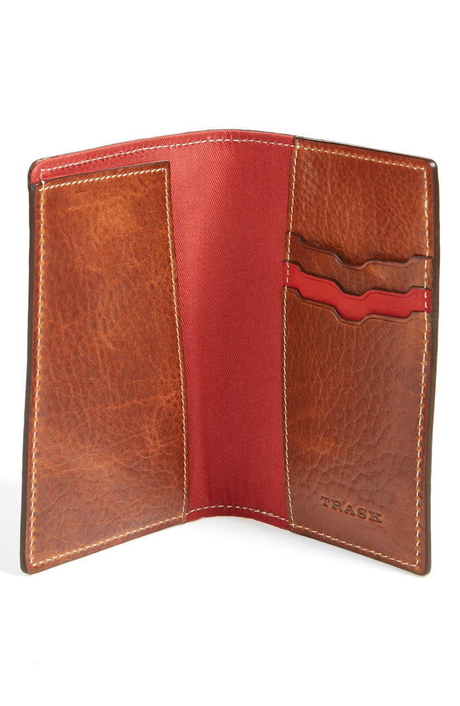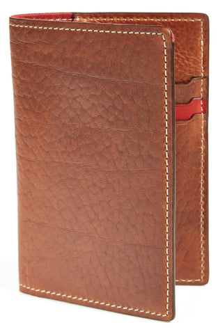 - Richly grained Horween® bison leather forms a slim passport holder with practical style.